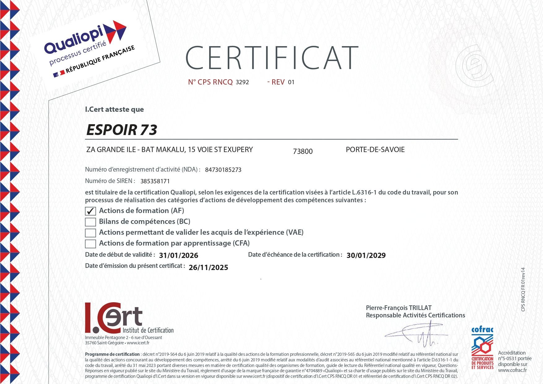 Le centre de formation Espoir73